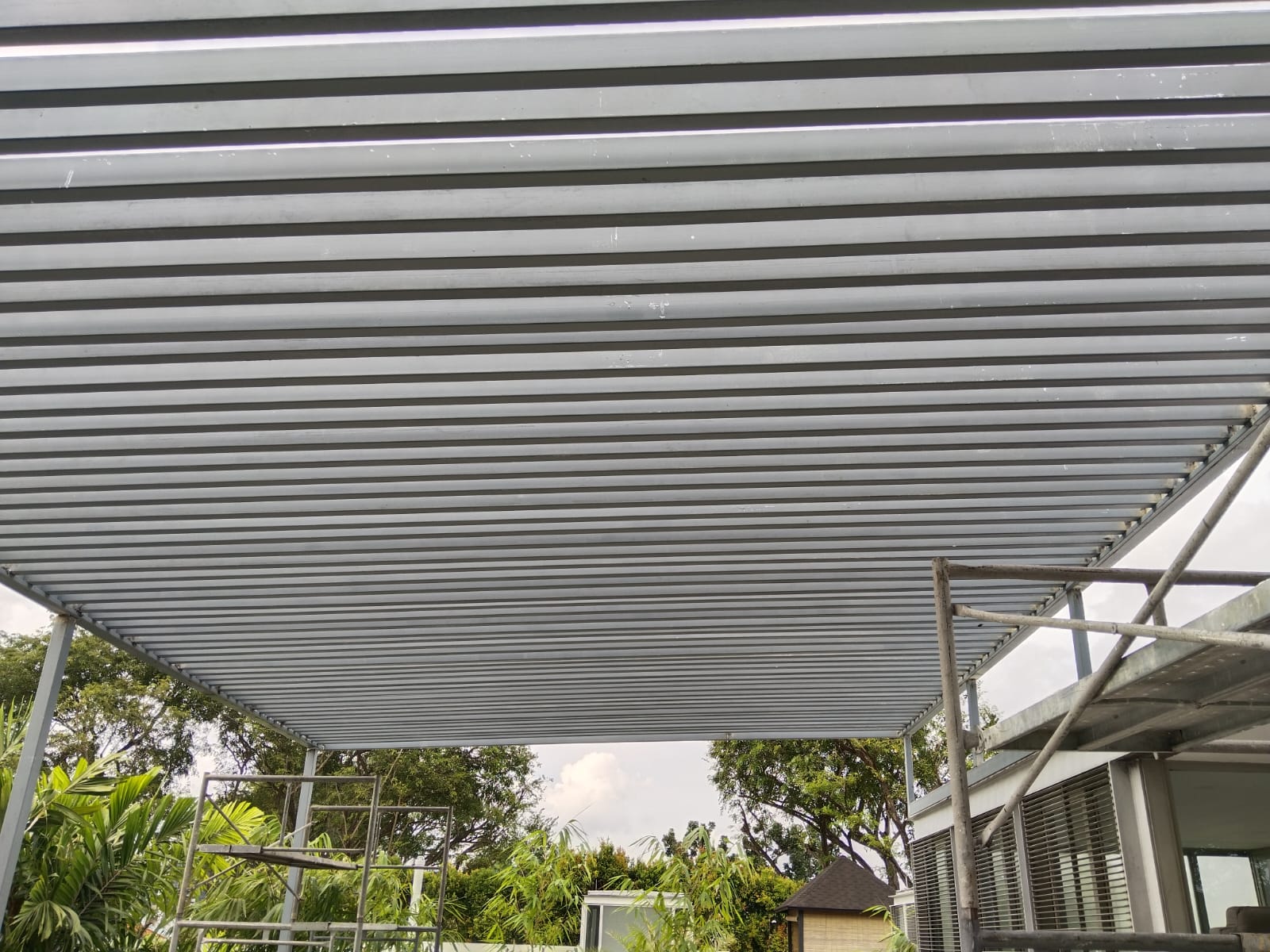 Stylish & weatherproof canopy roof installation for sun and rain protection.
